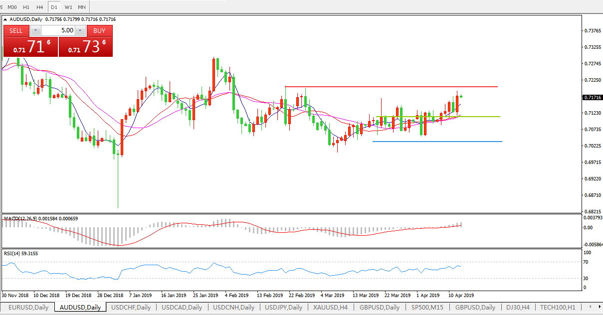 因美元走势疲软,商品货币出现了明显的回升,尽管周四因美元走强令商品货币回吐上一交易日所有的涨幅,但是周五因中国社融数据和贸易数据大好,商品货币再次收复失地并继续走高。3月中国社融和贸易数据大好说明中美贸易局势对于中国经济影响总体可控,同时制造业出现回暖的迹象,这和此前公布的3月PMI数据吻合,缓解了市场对于中国经济放缓的忧虑情绪,而商品货币对于中国经济数据的敏感程度较高,因此推动了澳元和纽元的快速回升。