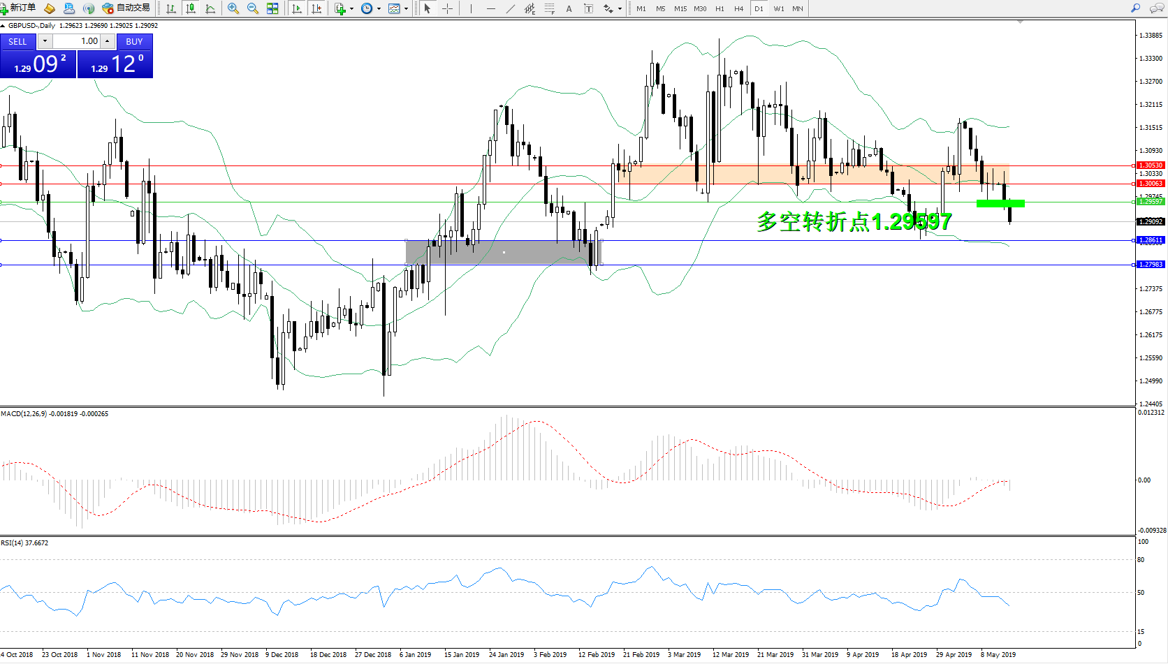 交易策略:1.29597下方看跌,目标1.28611、1.27983