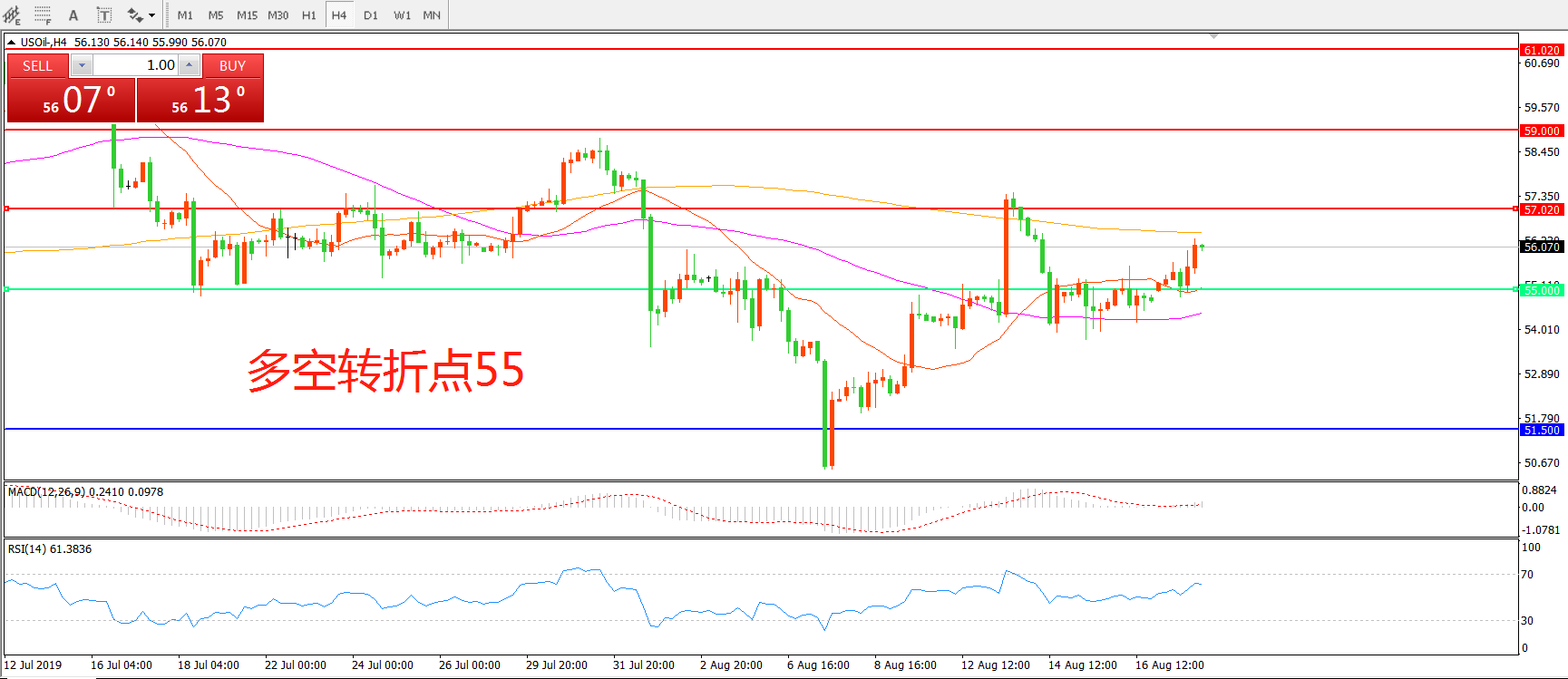 多空转折点:55.00