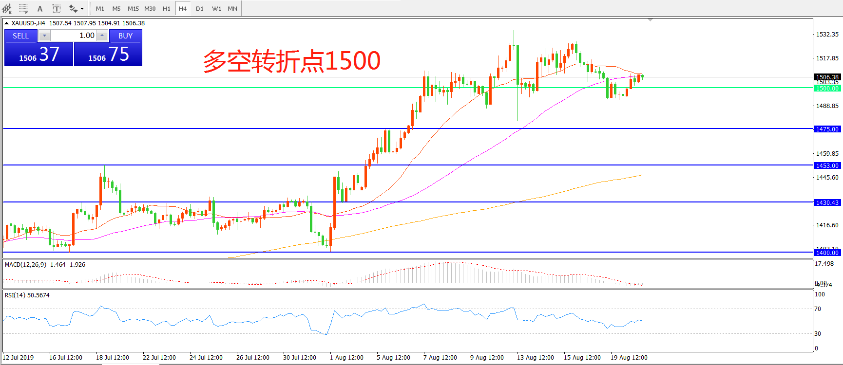 多空转折点:1500.00