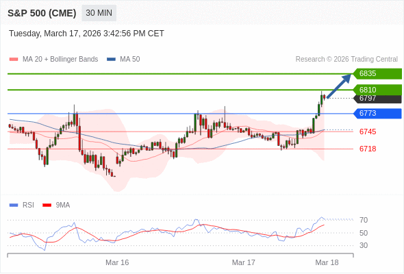 在 6773 之上,看涨,目标价位为 6810 ,然后为 6835 。