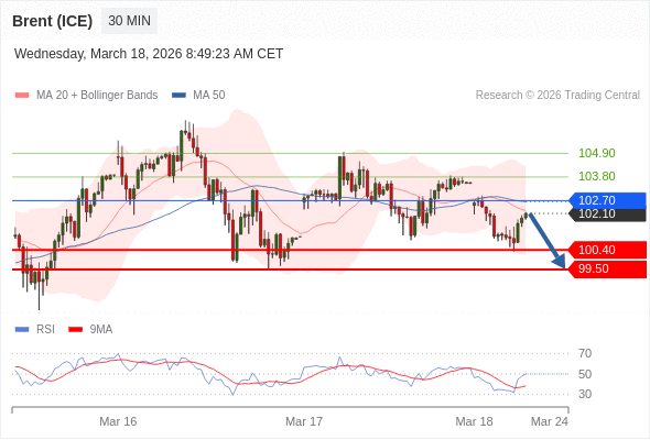 交易策略: 在 102.70 之下,看跌,目标价位为 100.40 ,然后为 99.50 。