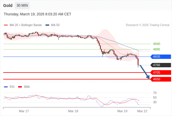 在 4835 之下,看跌,目标价位为 4705 ,然后为 4650 。
