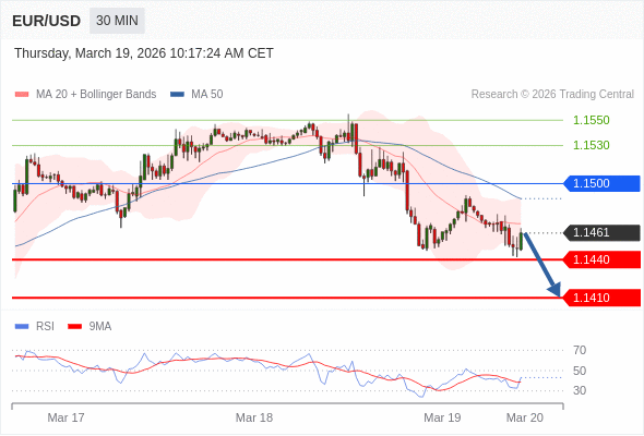 交易策略: 在 1.1500 之下,看跌,目标价位为 1.1440 ,然后为 1.1410 。