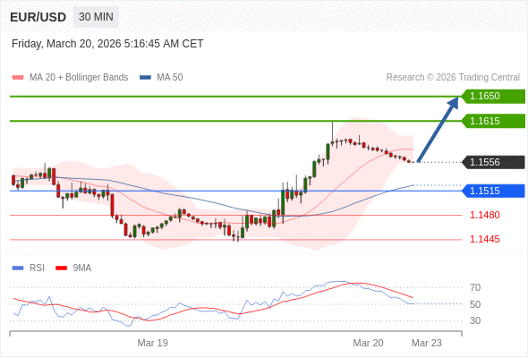 在 1.1515 之上,看涨,目标价位为 1.1615 ,然后为 1.1650 。