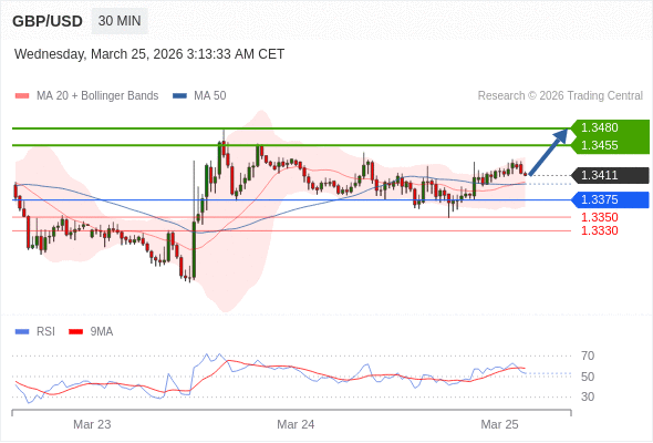 在 1.3375 之上,看涨,目标价位为 1.3455 ,然后为 1.3480 。