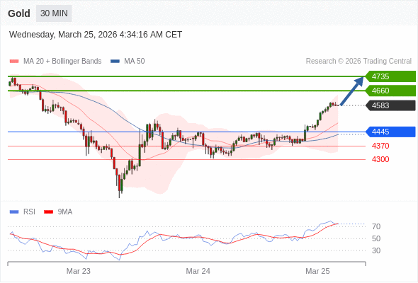 在 4445 之上,看涨,目标价位为 4660 ,然后为 4735 。