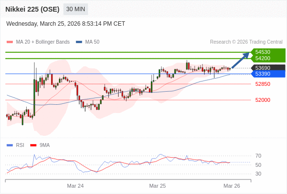在 53390 之上,看涨,目标价位为 54200 ,然后为 54530 。