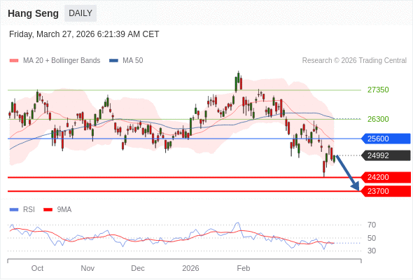 交易策略: 在 25600 之下,看跌,目标价位为 24200 ,然后为 23700 。