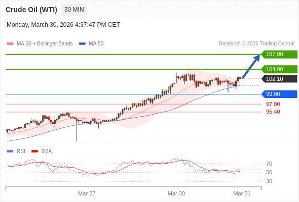 在 99.00 之上,看涨,目标价位为 104.00 ,然后为 107.00 。