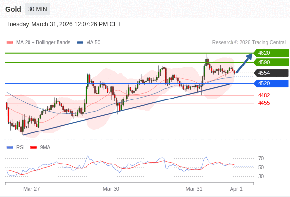 交易策略: 在 4520 之上,看涨,目标价位为 4590 ,然后为 4620 。