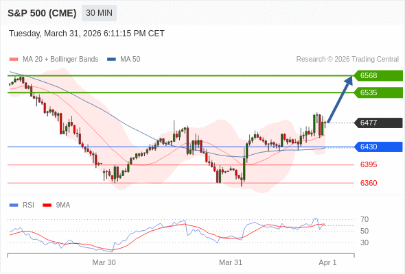 在 6430 之上,看涨,目标价位为 6535 ,然后为 6568 。