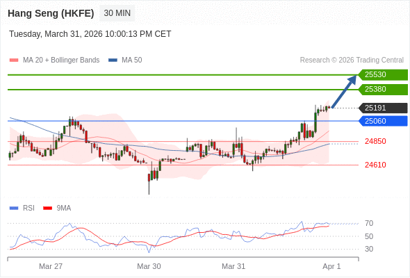 在 25060 之上,看涨,目标价位为 25380 ,然后为 25530 。
