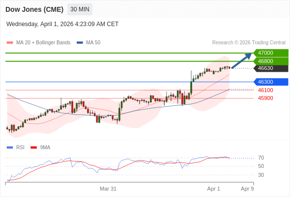 在 46300 之上,看涨,目标价位为 46800 ,然后为 47000 。