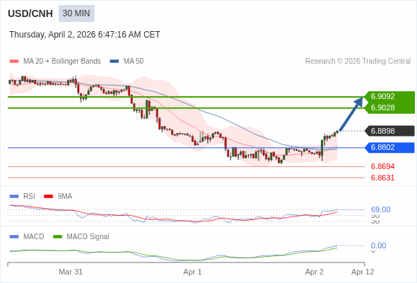 交易策略: 看涨,当 6.8802 为支撑位。