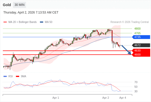 在 4735 之下,看跌,目标价位为 4630 ,然后为 4600 。