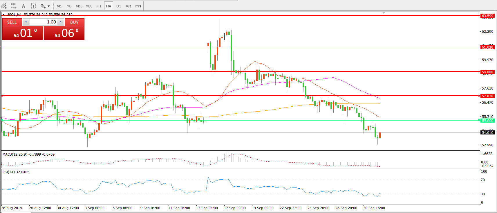 美国原油USOIL     4小时图
