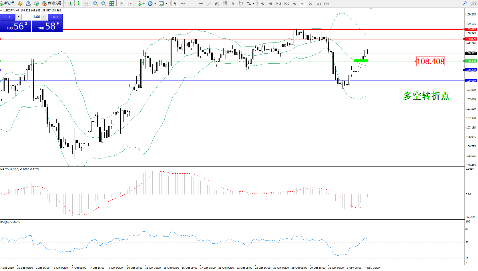 交易策略:108.408上方看涨,目标108.829109.015