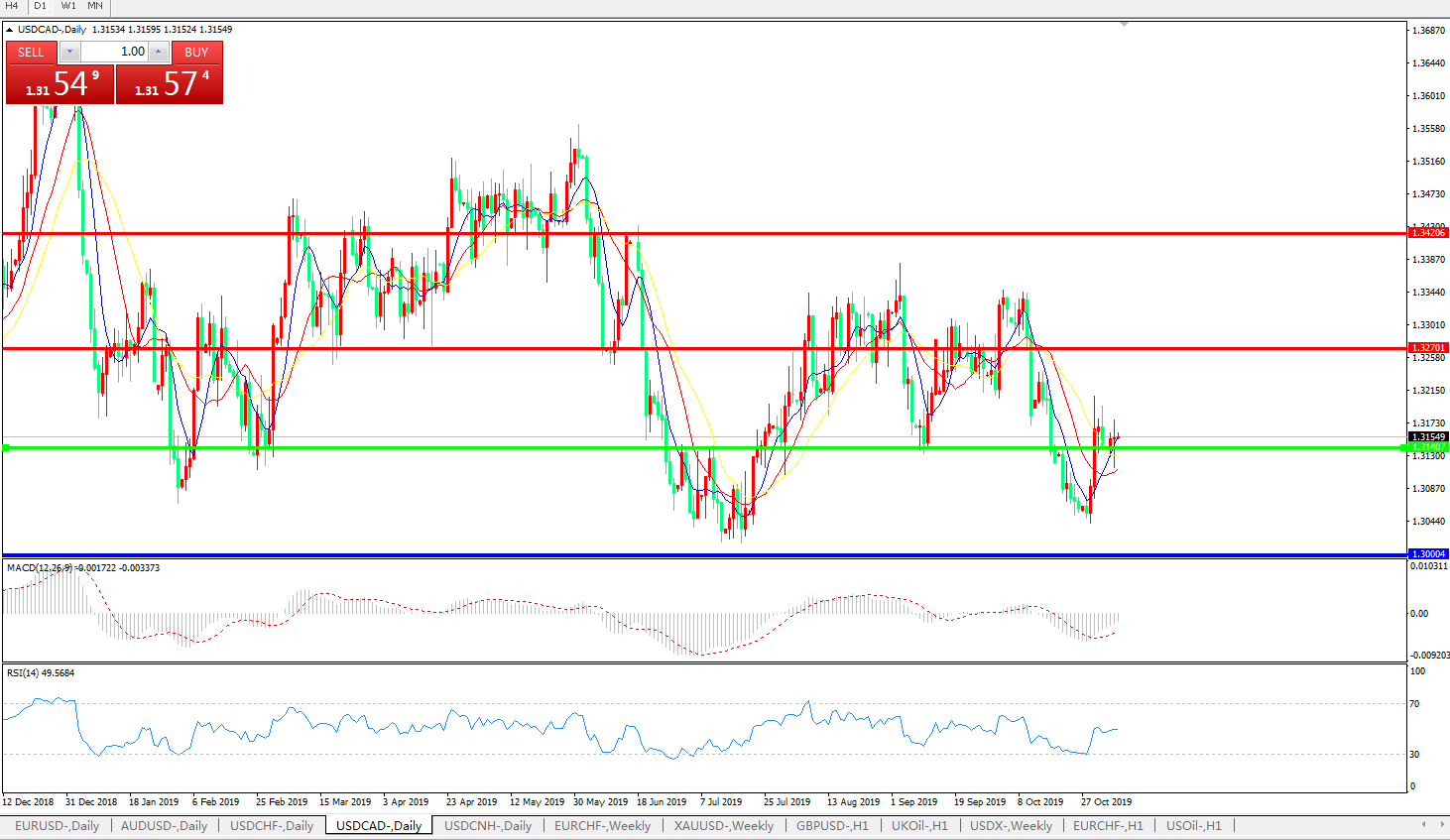 美元兑加元USDCAD    日线图: