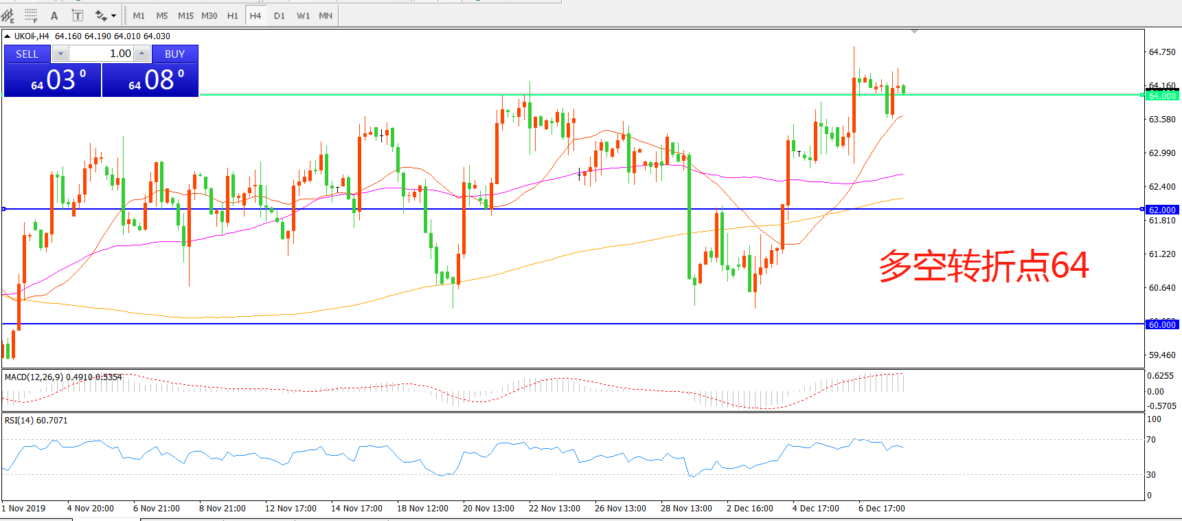 多空转折点:64.00