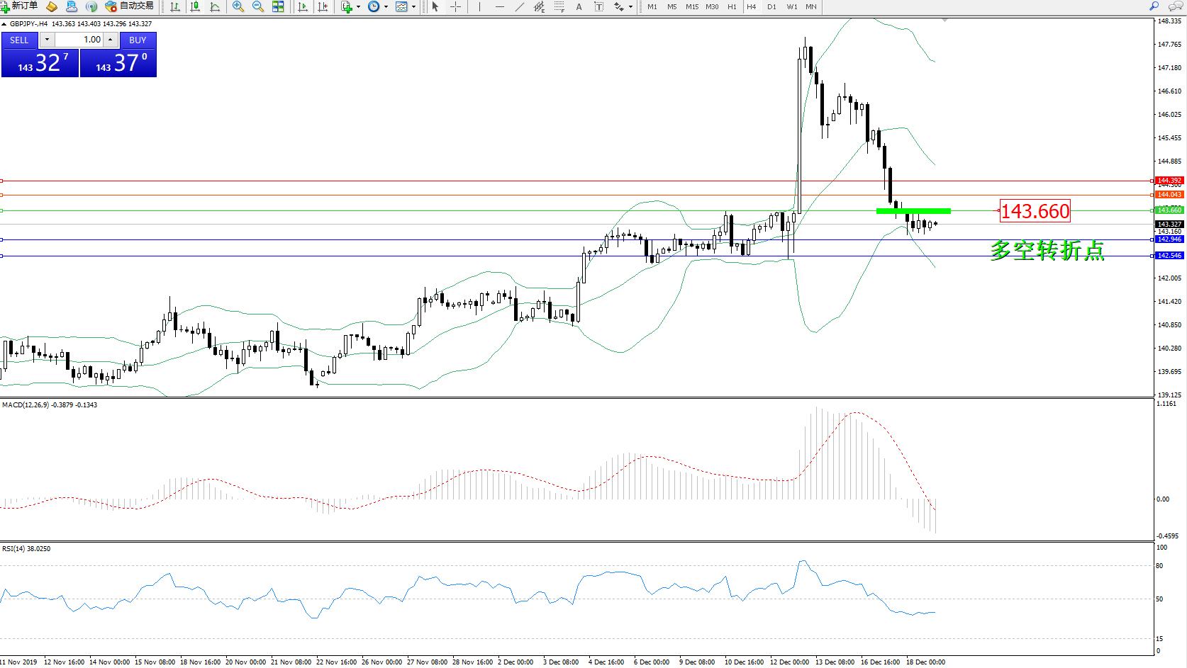 交易策略:143.660下方看跌,目标142.946142.546