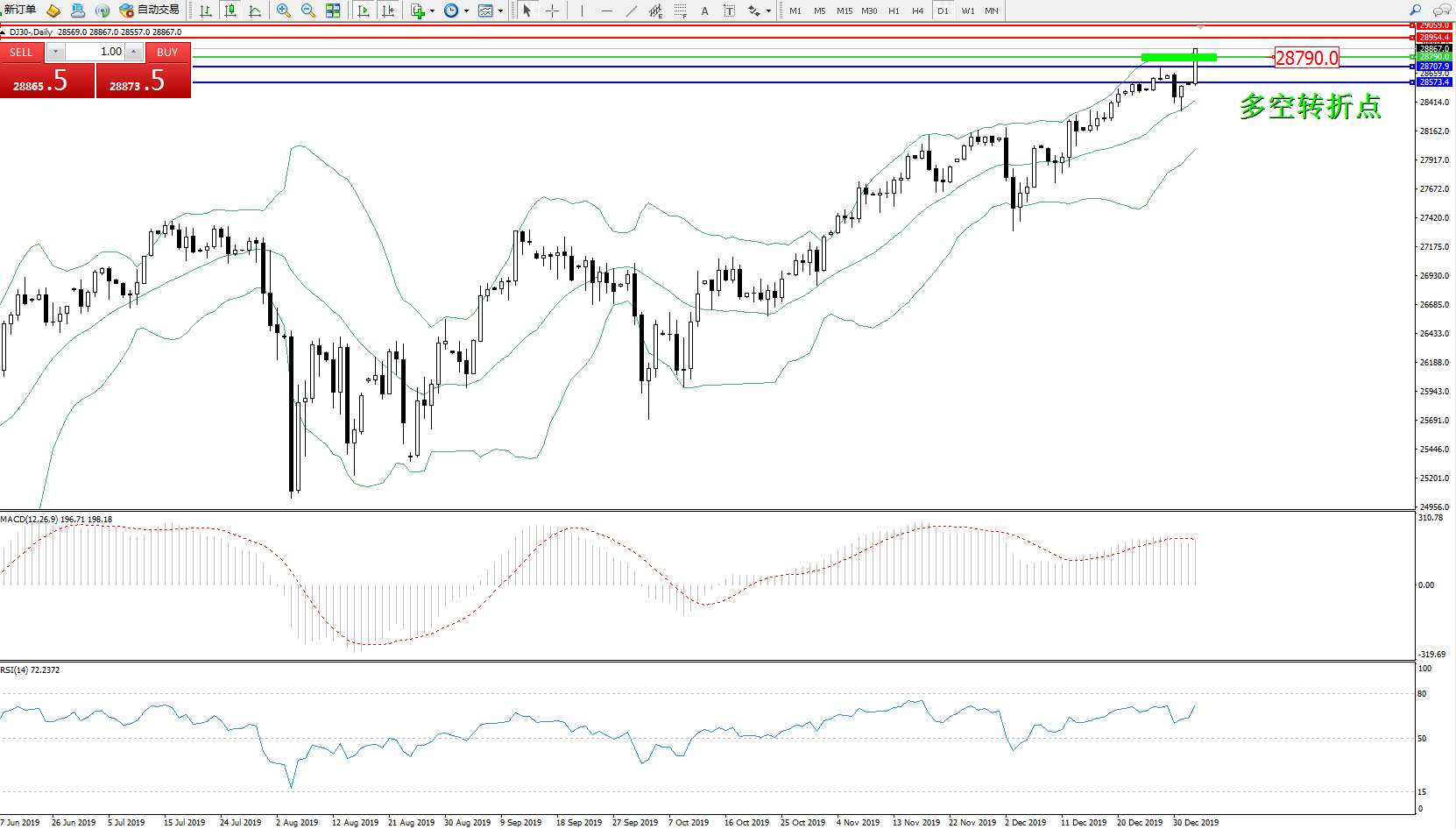 道琼斯指数1月2日(周四)收盘上涨330.40点,涨幅1.16%,报28868.80点。美国三大股指2020年首个交易日齐创收盘历史新高,延续2019年很多资产类别强劲上涨的势头。投资者为中国央行支持经济的最新政策举措而欢欣鼓舞。苹果、Alphabet和耐克等大型股均创下历史新高。这是过去十年来美国股市的最佳开局之一,去年年底前夕,有以良好流动性推动的动能类涨势,这种动能本身就在持续。在大多数主要资产经历了辉煌的2019年之后,现在的焦点转向了未来一年。