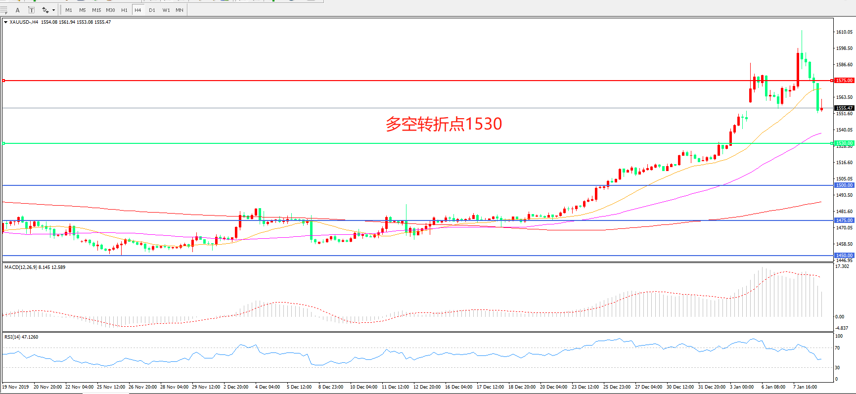 多空转折点:1530.00