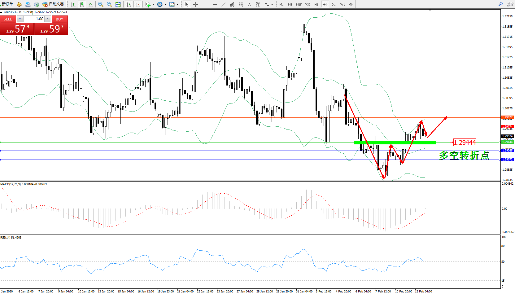 交易策略:1.29444上方看涨,目标1.29774、1.29977