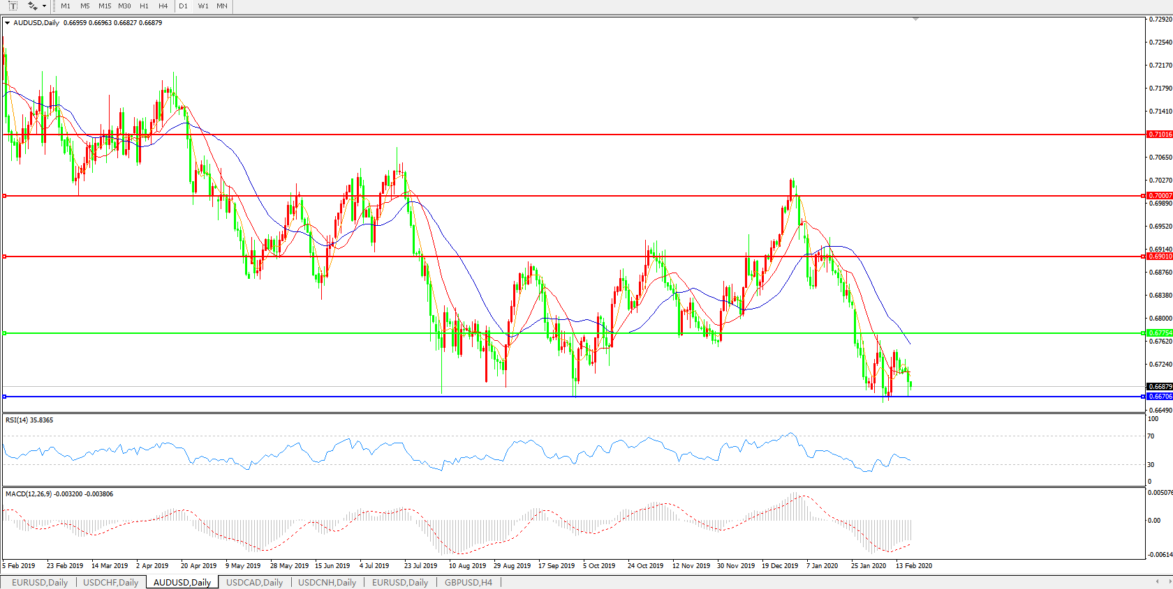 支撑位:0.6670 0.6600