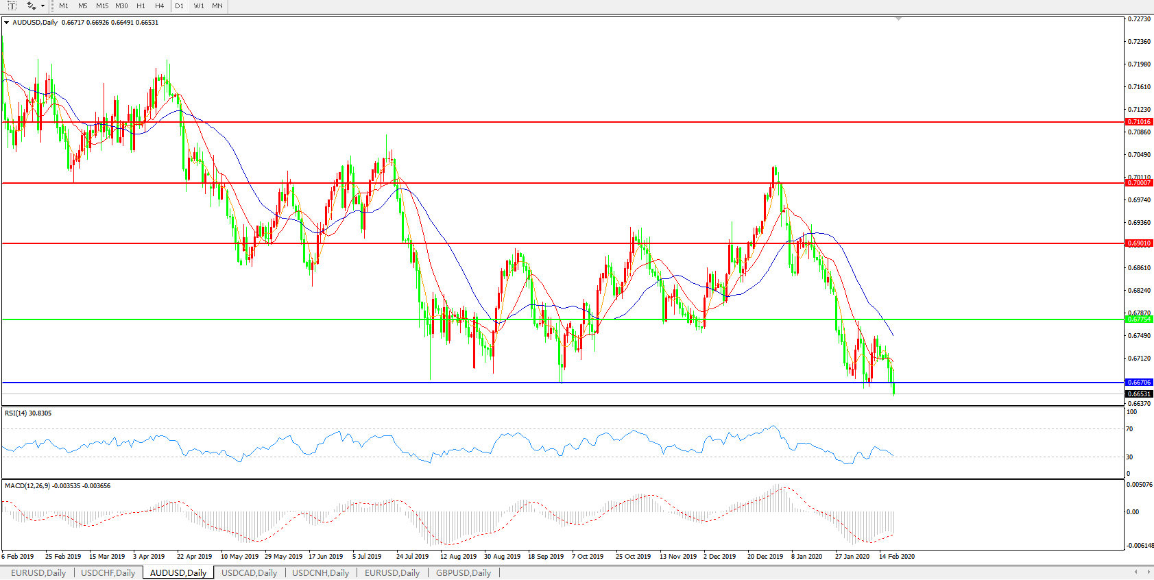 支撑位:0.6670 0.6600