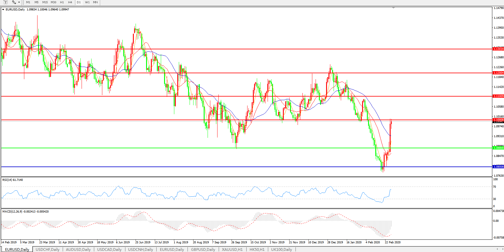 欧元兑美元EURUSD   日线图: