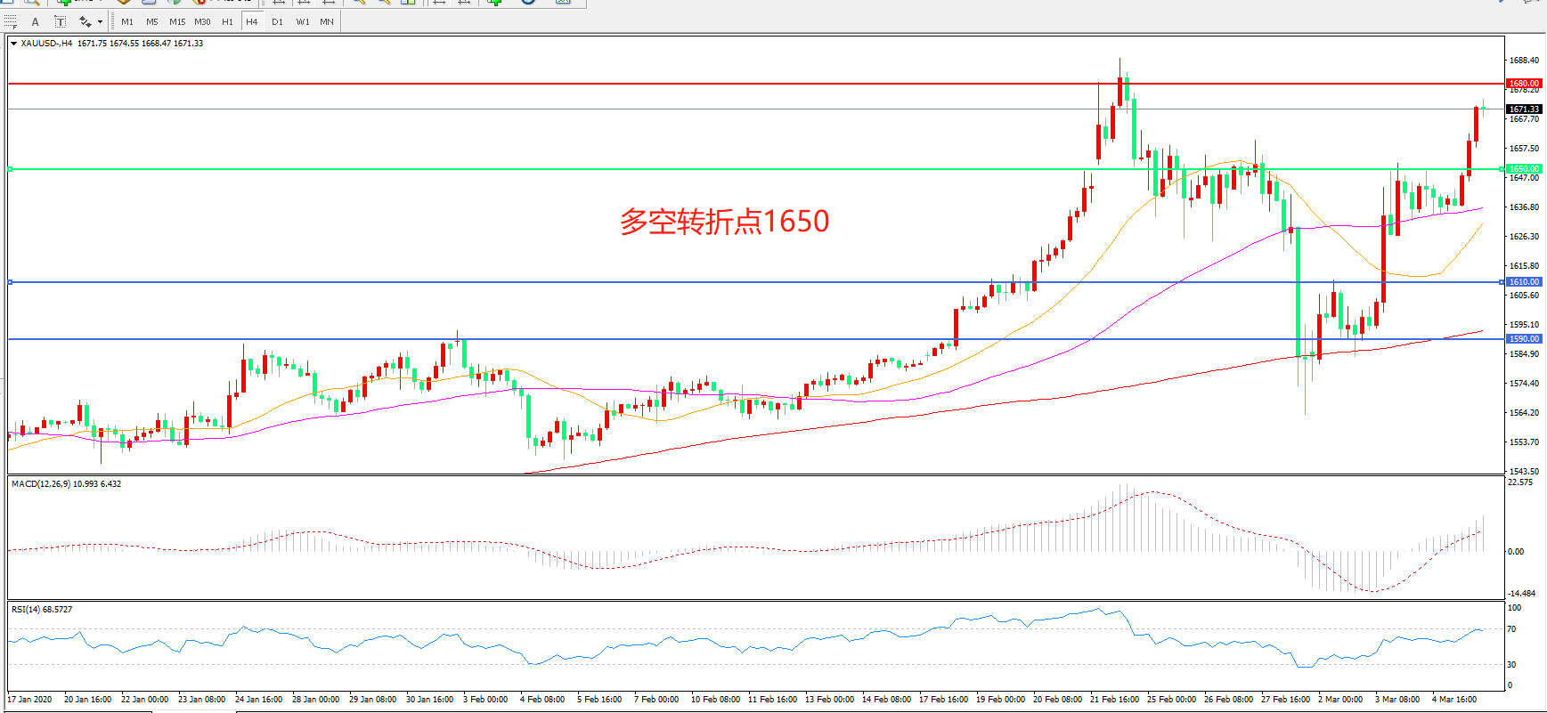 交易策略:在1650.00之上看涨,目标1680.00   1700.00