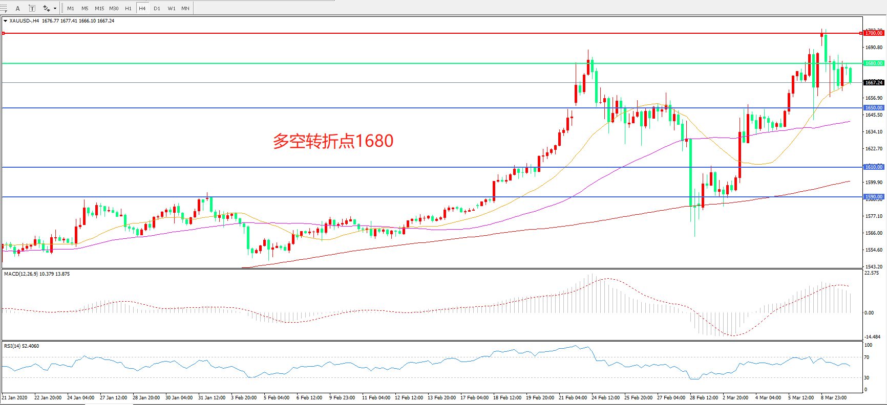 多空转折点:1680.00