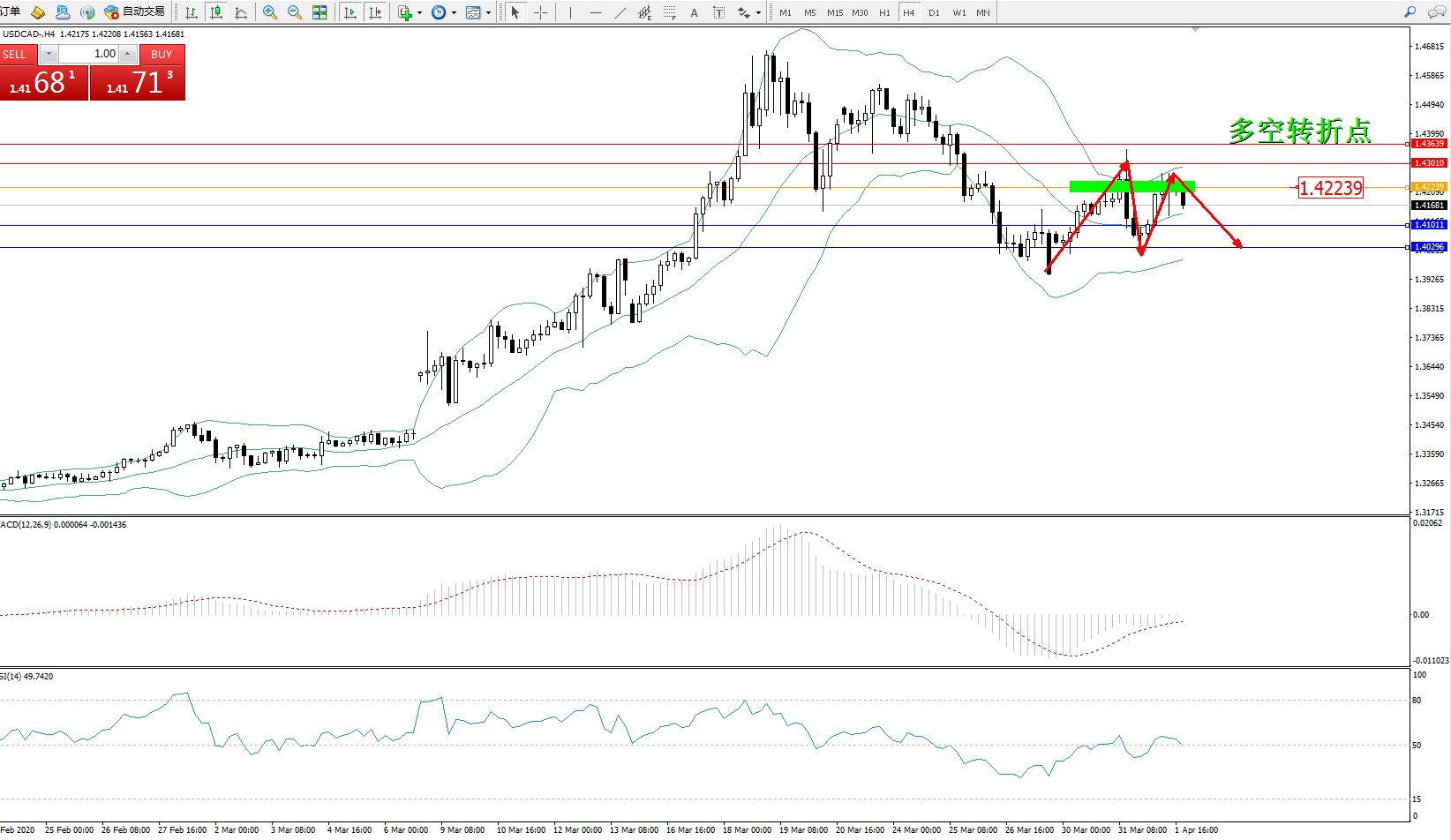 美元加元USDCAD——4小时K线图显示: