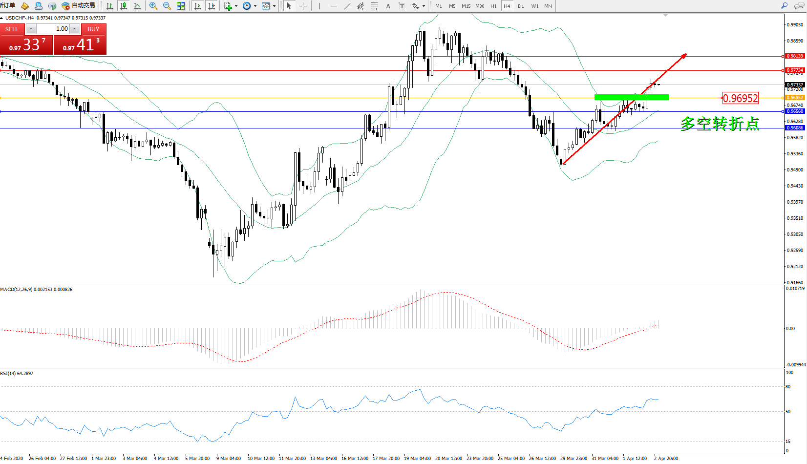 美元瑞郎USDCHF——4小时K线图显示: