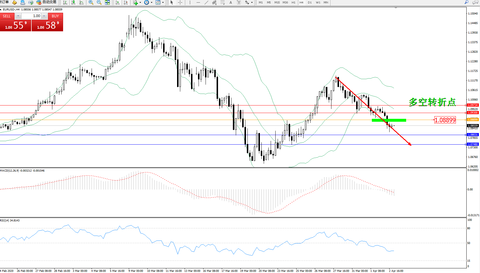 交易策略:1.08899下方看跌,目标1.080311.07480