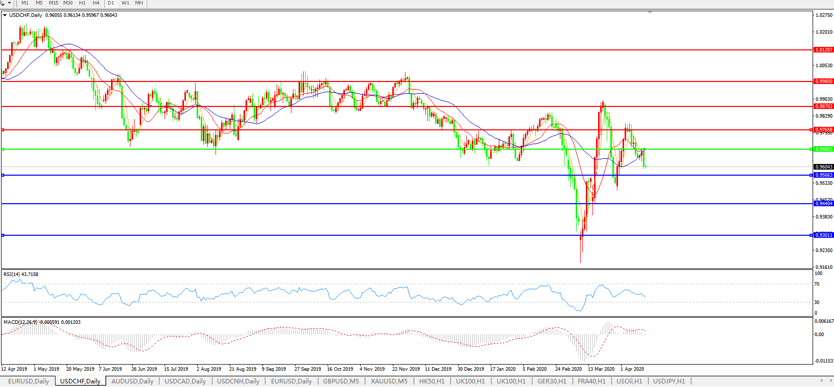 美元兑瑞郎USDCHF 日线图: