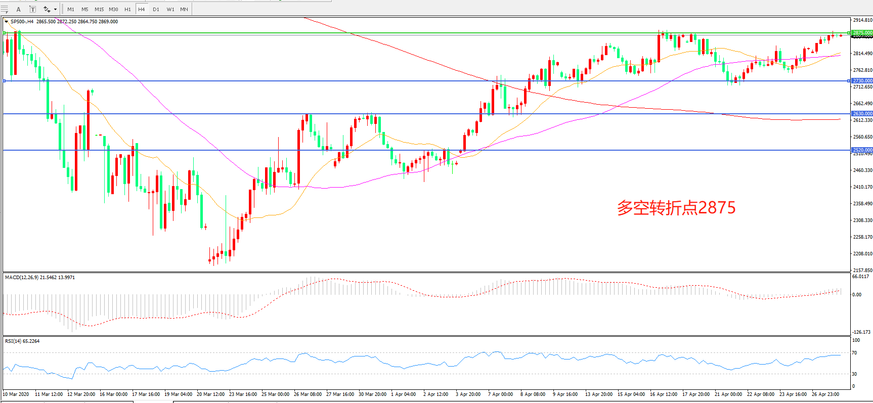 多空转折点:2875.00