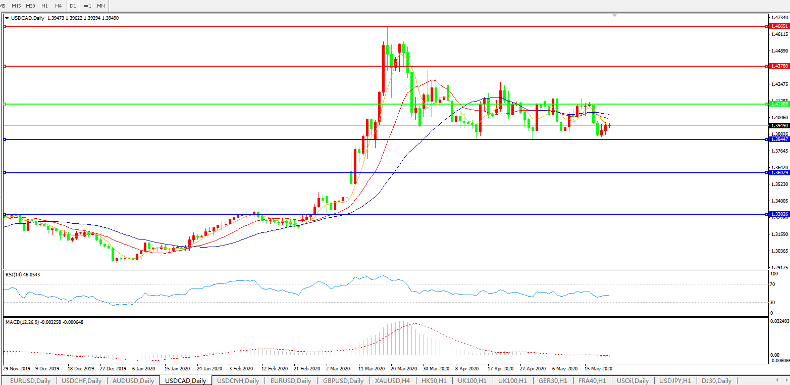 技术面简析:日线图均线开始发散下行,汇价跌破1.40关口后持续小幅反弹,MACD走平且量能几无,RSI趋于走平,预计短期汇价或将在反弹后进一步走低。