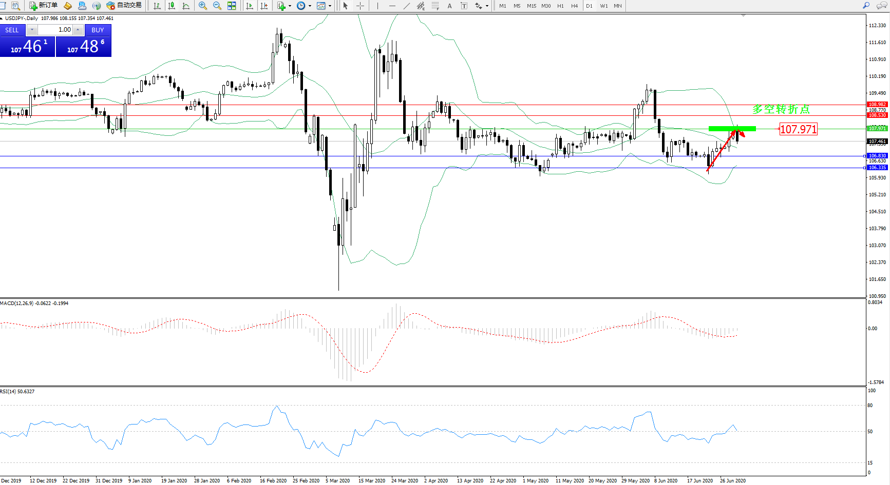 交易策略:107.971下方看跌,目标106.830106.335