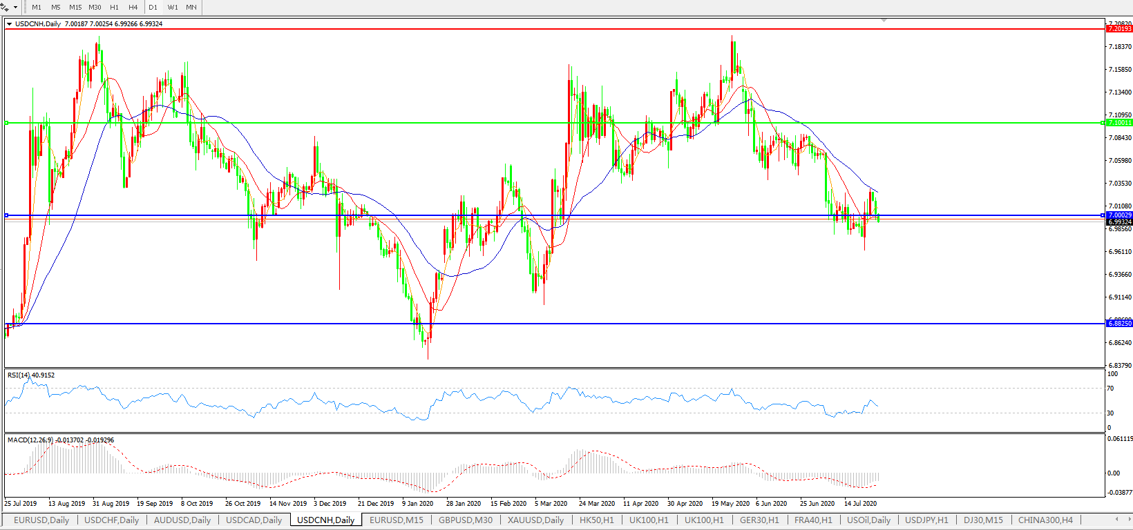 美元兑人民币USDCNH 日线图: