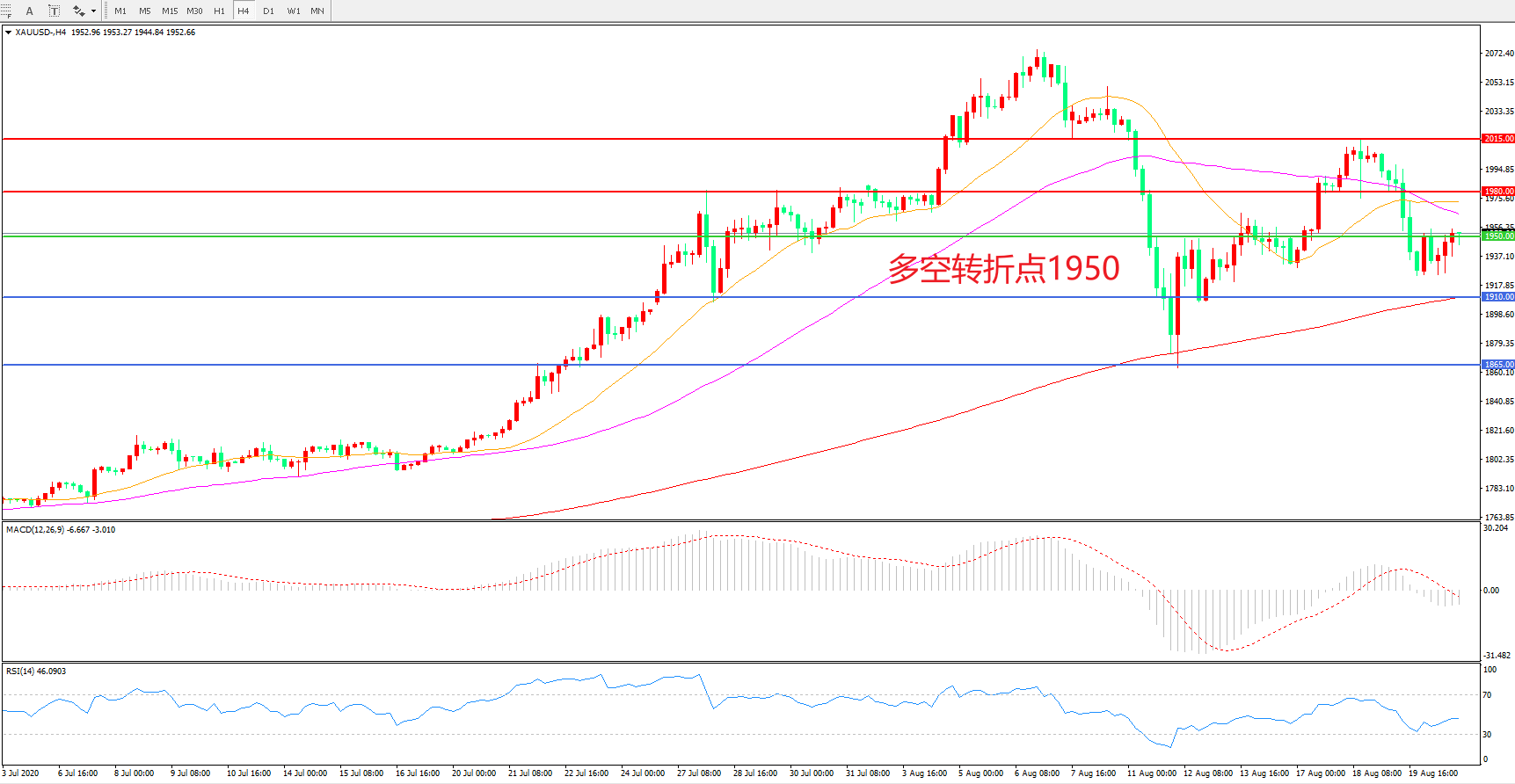现货黄金XAU/USD    4小时图