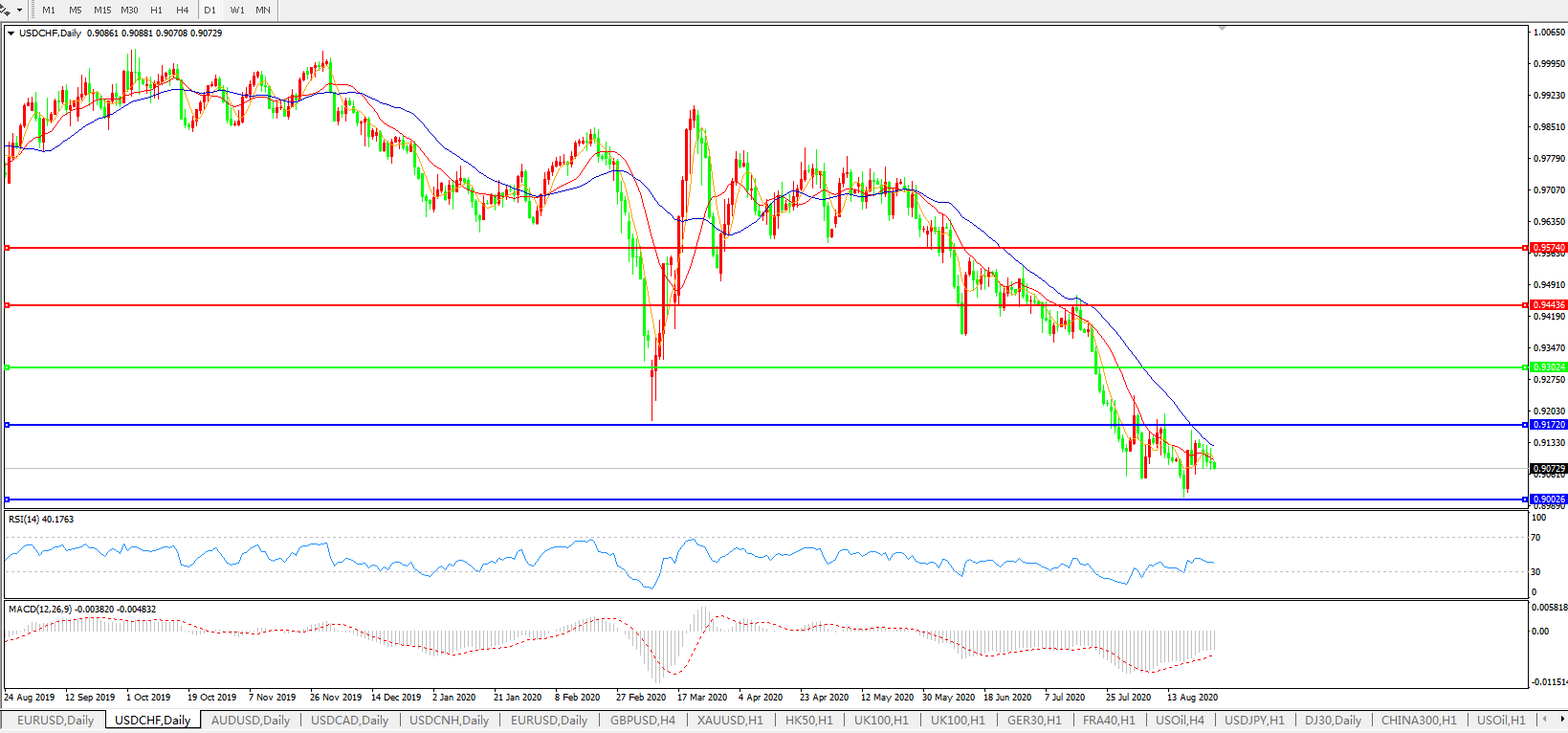 交易策略:0.9300下方看跌,目标0.9170、0.9000