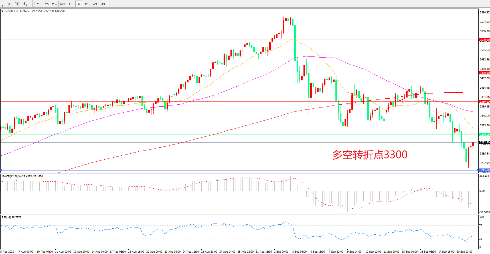 多空转折点:3300.00