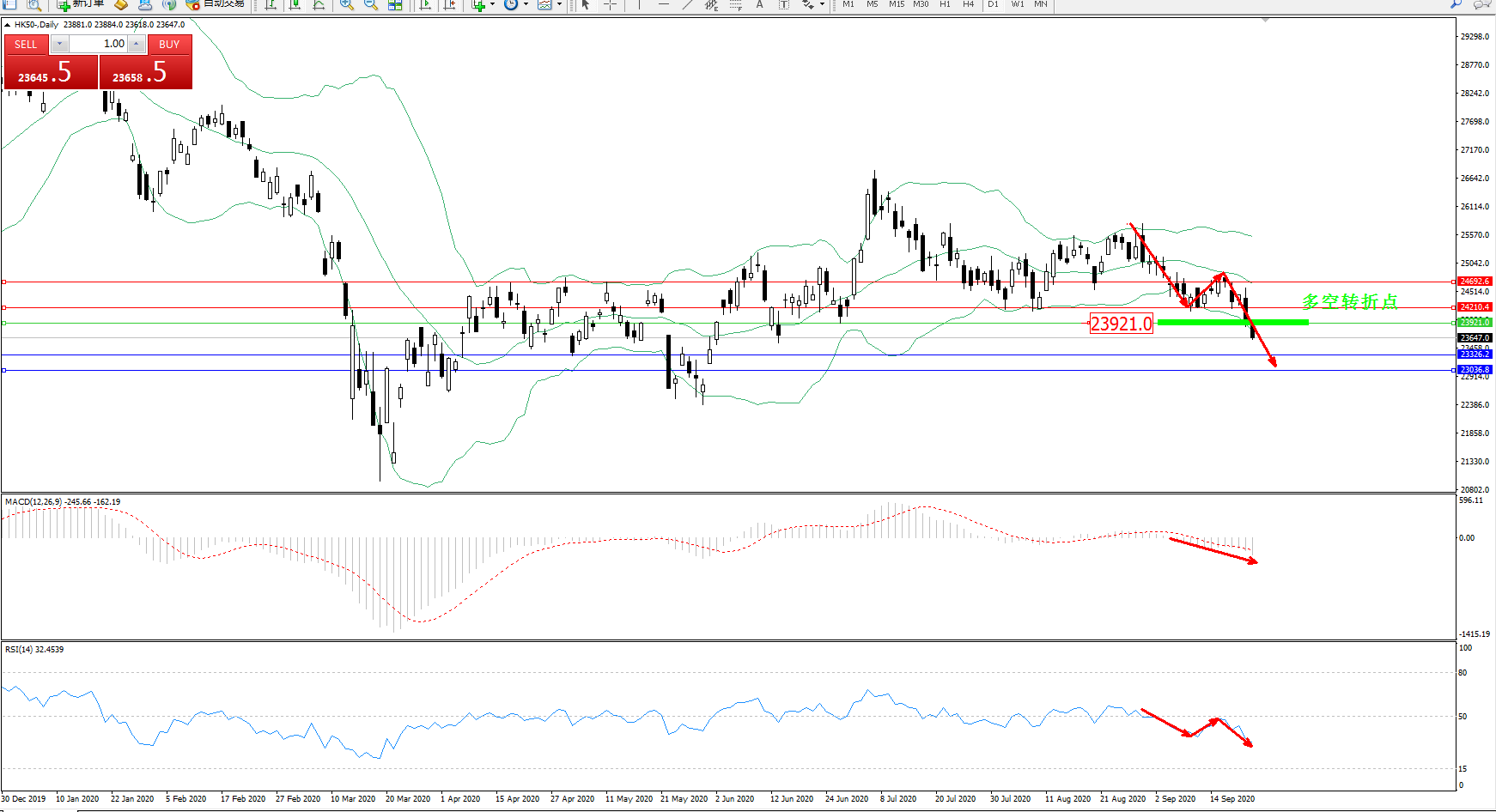 香港恒生指数9月22日(周二)收盘下跌233.84点,跌幅0.98%,报23716.85点;港股主要指数延续下跌行情,恒指午后跌超1.1%,创逾3个月新低,科技股强势,助恒生科技指数逆势上涨0.52%。半导体板块强势,ASM太平洋升超6%;9月第二批国产游戏版号出炉,手游股活跃,IGG、网易均有涨幅;大型科技股逆势走强,阿里涨1%,京东、美团、中兴通讯均上涨;华住集团上市首日涨近5%。今日南下资金逆势净流入6.6亿港元,大市成交额为1060亿港元。 港交所董事总经理鲍海洁表示,相信将来科技企业、传统企业都能有很大的发展空间,我们需要一个植根于亚洲时区的市场来满足企业的发展需求,港交所要做好自己的工作,为企业提供服务。目前已经有很好的势头,恒生科技指数推出时间非常短,可是已经有很多基金跟随布局,说明一方面需要企业准备好,也需要投资人做好准备,双方都准备好之后市场规模、广度逐渐拓展是非常自然的事情。