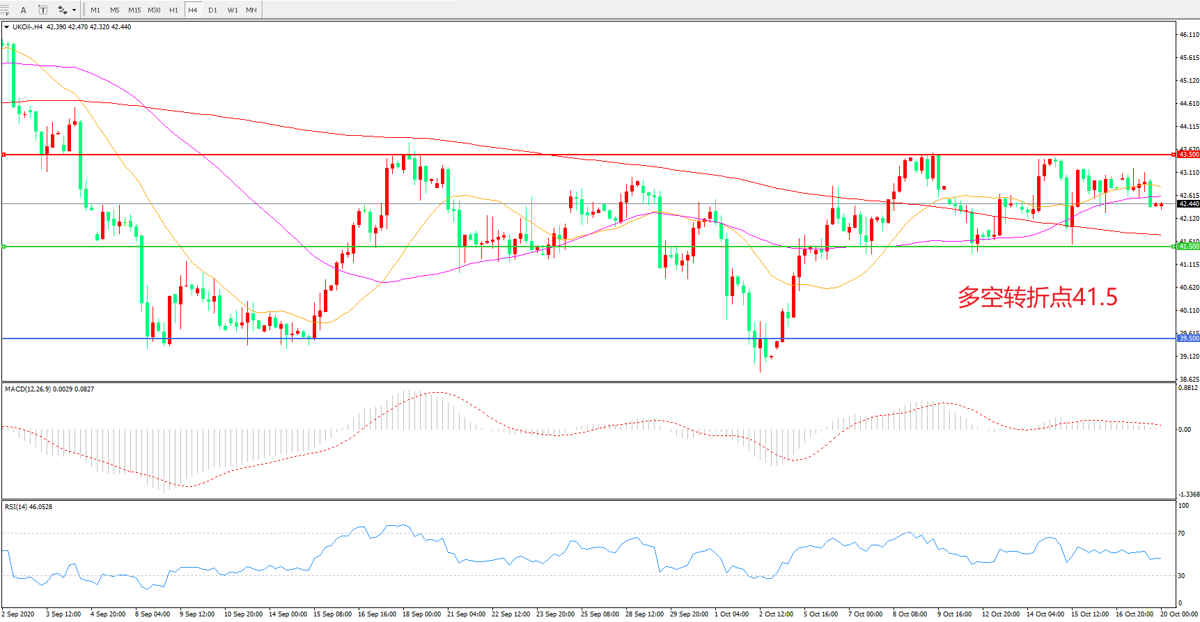 交易策略: 在41.50之上看涨,目标43.50 46.50