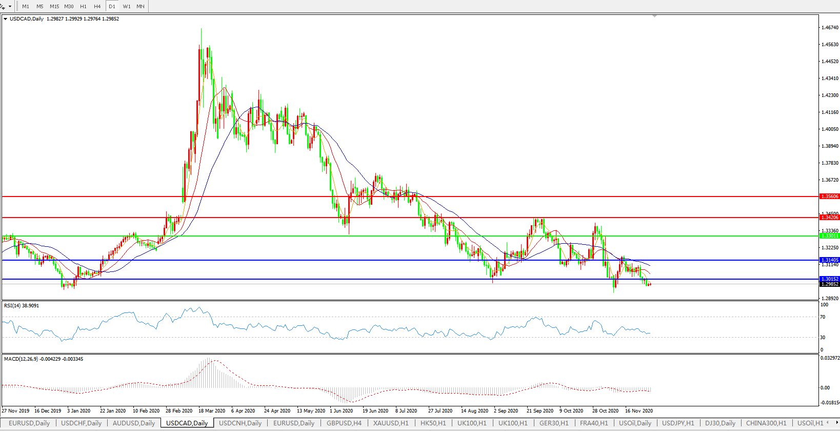 美元兑加元USDCAD    日线图: