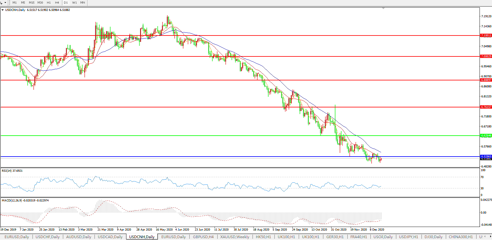 美元兑人民币USDCNH    日线图: