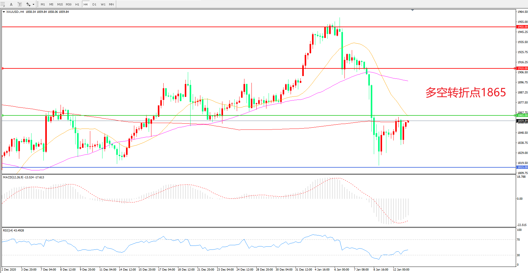 交易策略:在1865.00之下看跌,目标1815.00 1765.00