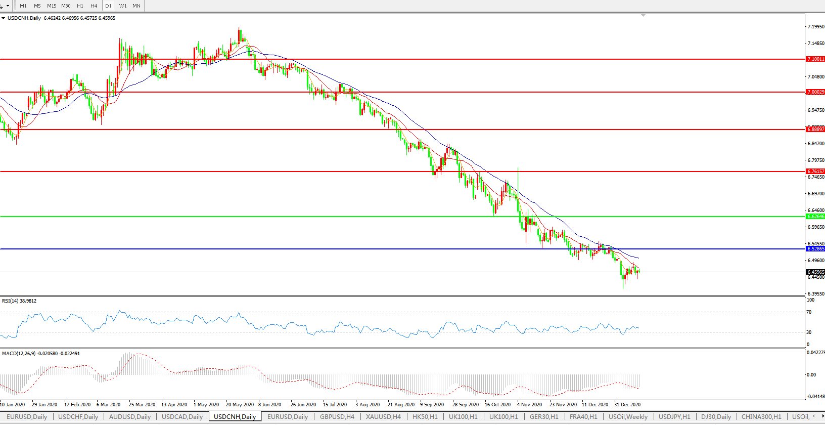 美元兑人民币USDCNH    日线图: